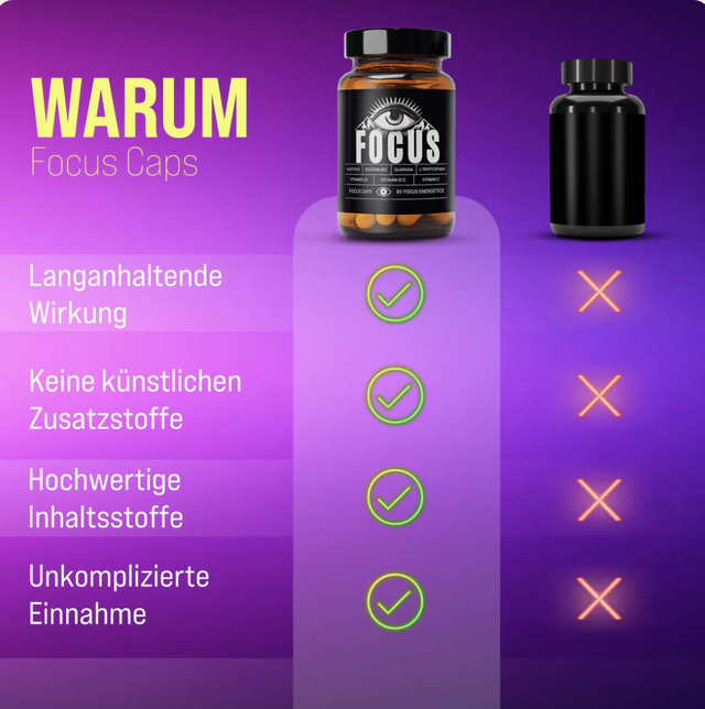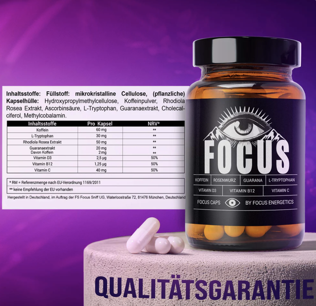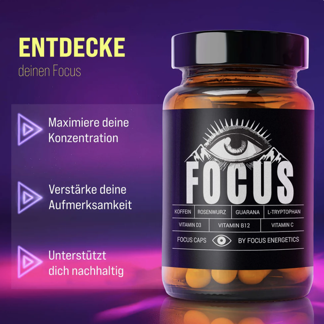 Ihr habt sie euch gewünscht, wir haben sie für euch gebaut. Die brandneuen Focus Caps sind da und sie machen definitiv mehr als wach. Wir nutzen synergetische Effekte um den optimalen Focus für Arbeit, Sport, oder Freizeit zu erreichen. Unsere einzigartige Kombination aus natürlichen Wachmachern und Vitaminen versorgt dich, nun auch in Kapselform, mit genau dem was du für eine intensive Session brauchst. Probiere Focus Caps jetzt aus. Welcome to the fusion.